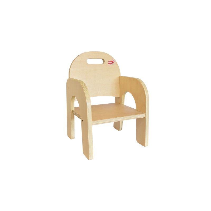 Sillón individual de madera con el tamaño ideal para niños pequeños. Es resistente y fácil de mover, funcional para salas de maternal, espacios de juego, consultorios y casa.